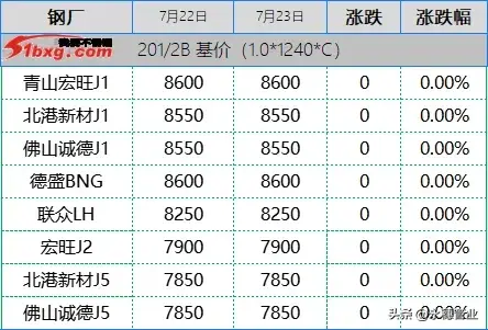 今日,青山代理持平報8月資源:鼎信J2-7700元/噸;J3-8000元/噸;J1-8400元/噸;J4-9000元/噸。后期,青山鋼廠盤價下調(diào)100元/噸與代理報價一致。市場其他產(chǎn)地報價:鑫峰J3、金海J3、中金J5、華樂J3A含稅7680-7750元/噸。北港新材J5、寶鋼D4、聯(lián)眾J2、永達(dá)J3E四、五尺含稅7700元/噸左右。