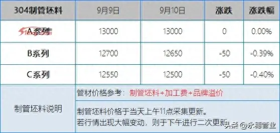 不銹鋼給水管制管坯料價差維持50元/噸;廢料成交傾向高位