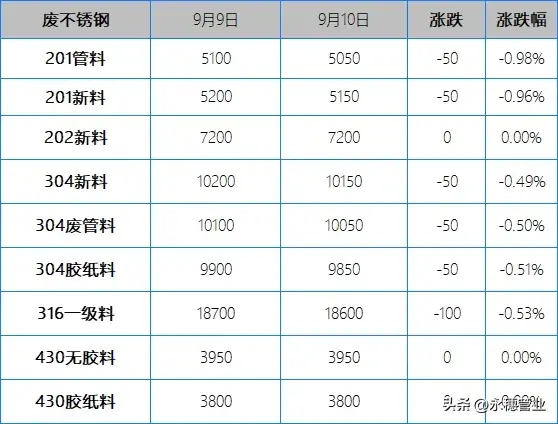 廢料方面,早間市場漲跌氛圍不明顯,具體報價多是較昨日午后持平,不過走至午后,隨著不銹鋼期貨盤面泛綠運(yùn)行,部分304商戶有更新報價下調(diào)20-50進(jìn)行收貨,市場整體加價收貨意愿不高,其中個別高位商戶有表示現(xiàn)金款需少50元/噸。目前市場主流報價區(qū)間:201新料在5100-5150元/噸;304新料在10050-10100,個別在10150元/噸。
