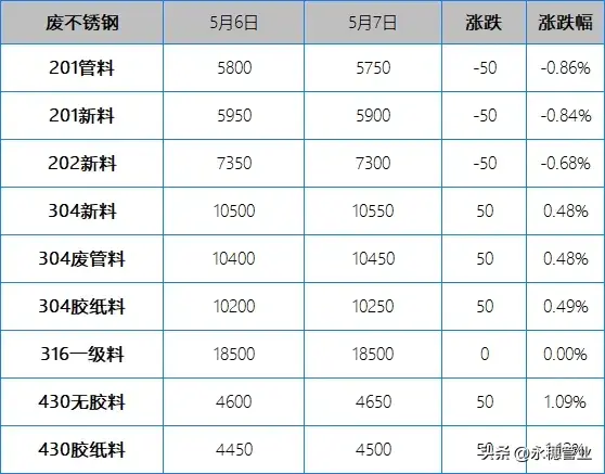 不銹鋼水管制管坯料早間挺價午后現(xiàn)“低價”;201廢料跌50元/噸
