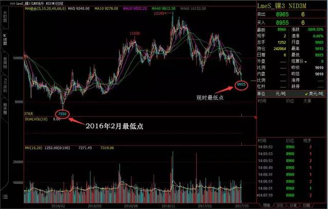近期倫鎳可謂傷透了投資者的心,每當(dāng)出現(xiàn)周期高位時,它卻來個連續(xù)大跌。今日凌晨更一度跌破9000關(guān)口,直插新低8915。