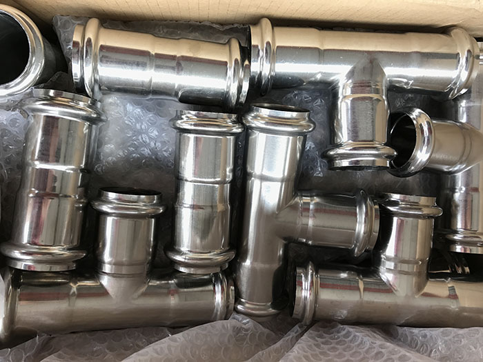 3、該產(chǎn)品選材方面以及結(jié)構(gòu)特點(diǎn)都讓其在施工安裝方面都得到了大大簡便以及快捷。因?yàn)橐话愕墓芗诂F(xiàn)場(chǎng)安裝焊接的時(shí)候都要花費(fèi)大量的工作時(shí)間,并且還會(huì)出現(xiàn)一些漏水的情況,以及污染環(huán)境和風(fēng)險(xiǎn)等情況出現(xiàn)。可以使用不銹鋼雙卡壓管件就能夠讓整個(gè)過程的時(shí)間減少了將近三分之二的時(shí)間,同時(shí)也避免了漏水、環(huán)境污染以及風(fēng)險(xiǎn)等情況出現(xiàn)。