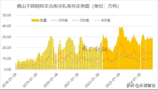 據(jù)佛山不銹鋼標(biāo)本庫存最新數(shù)據(jù)顯示:本周庫存總量較上周增加1.63%。其中,市場最關(guān)注的300系冷軋?jiān)谌B降后出現(xiàn)增庫,本次增幅為0.72%。