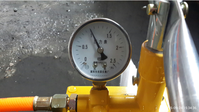 驗(yàn)收技巧:水管布設(shè)好后,先關(guān)閉水表的閥門,除預(yù)留打壓口外,封堵管路各出水口。在打壓口連接打壓機(jī)器(即簡(jiǎn)易手搖水泵),用打壓機(jī)器將水管內(nèi)水壓打到管道工作壓力的1.5倍(入戶市政自來(lái)水的一般為4~6個(gè)大氣壓,即0.4~0.6 Mpa),升壓時(shí)間不應(yīng)小于10 min,升至規(guī)定壓力后,觀查10分鐘,壓降不得超過(guò)0.02 Mpa,以所有接頭、接口無(wú)漏水為合格。