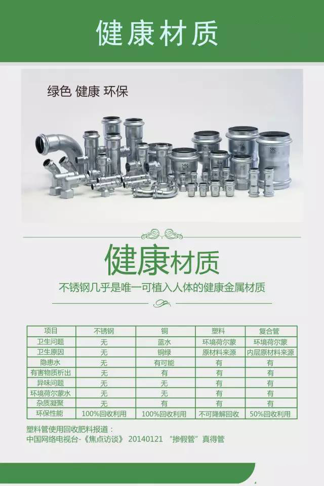 在這樣的大背景下,不銹鋼管材以其幾乎為零的漏水率和無與倫比的健康性被推上了城市供水系統(tǒng)和建筑物水管領(lǐng)域。研究并實(shí)際表明,一旦不銹鋼管材被廣泛運(yùn)用,城市管網(wǎng)的漏水率將大幅度降低,建筑物水質(zhì)將得到充分保障。薄壁不銹鋼管材以其所特有的安全性、可靠性、清潔性、耐用性、經(jīng)濟(jì)性和環(huán)保性等各方面突出優(yōu)勢,為保護(hù)水資源、改善水質(zhì)、保護(hù)人們的健康和提高生活質(zhì)量,保護(hù)人們的健康的提高生活質(zhì)量,保護(hù)環(huán)境和促進(jìn)社會經(jīng)濟(jì)的可持續(xù)發(fā)展發(fā)揮關(guān)鍵作用。